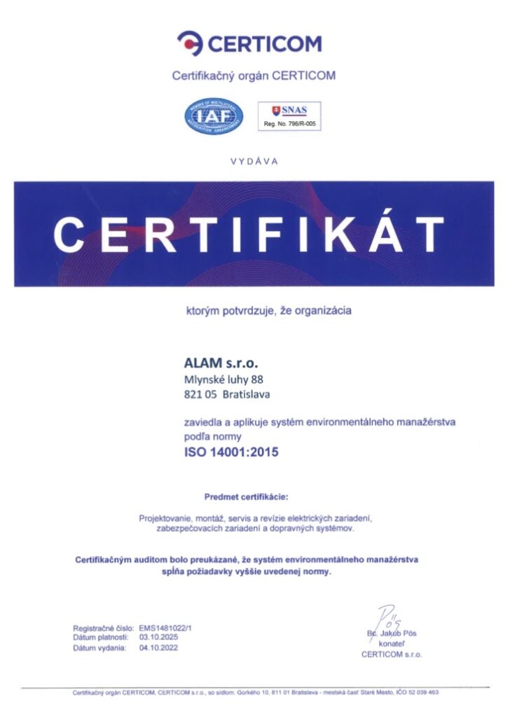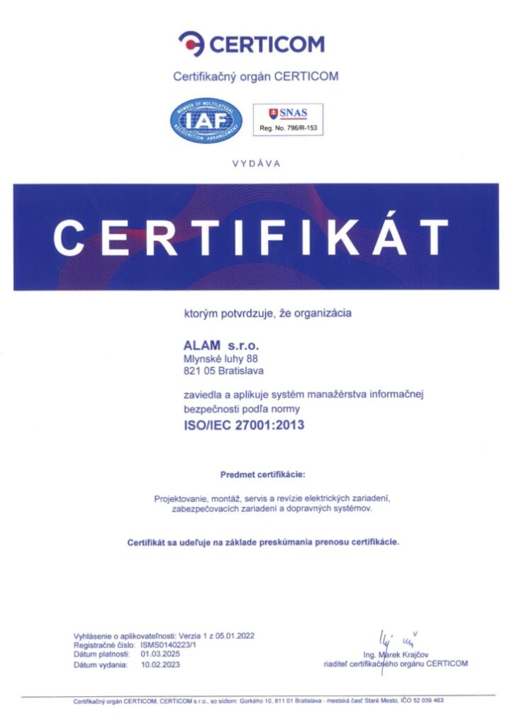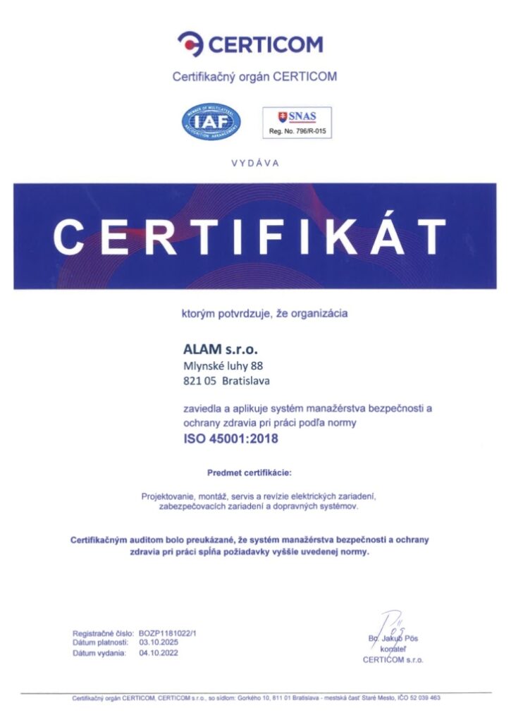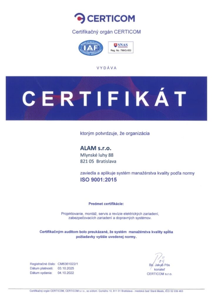 We offer quality and stability, proven by our certificates in the fields of quality management and maintenance of traffic and security systems.